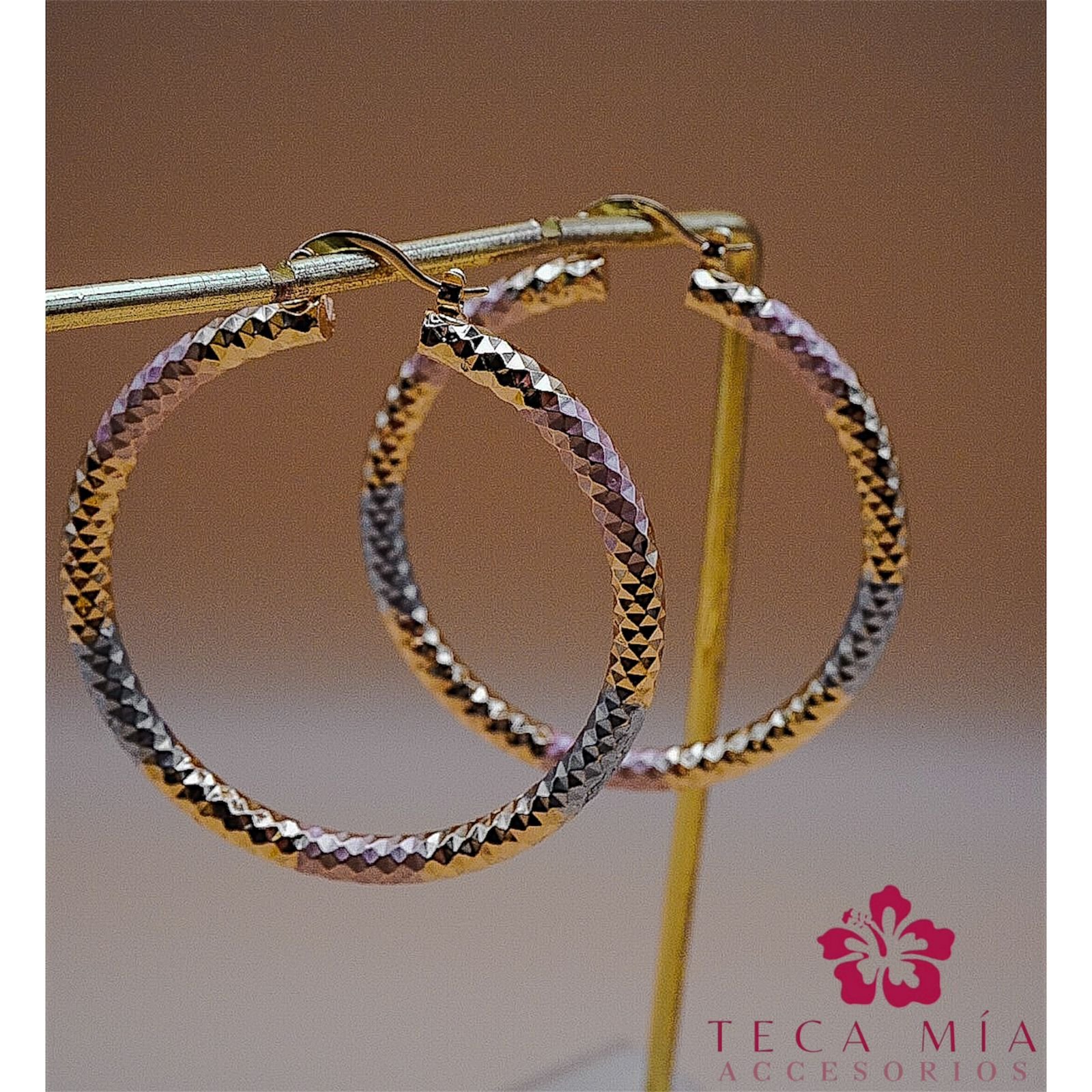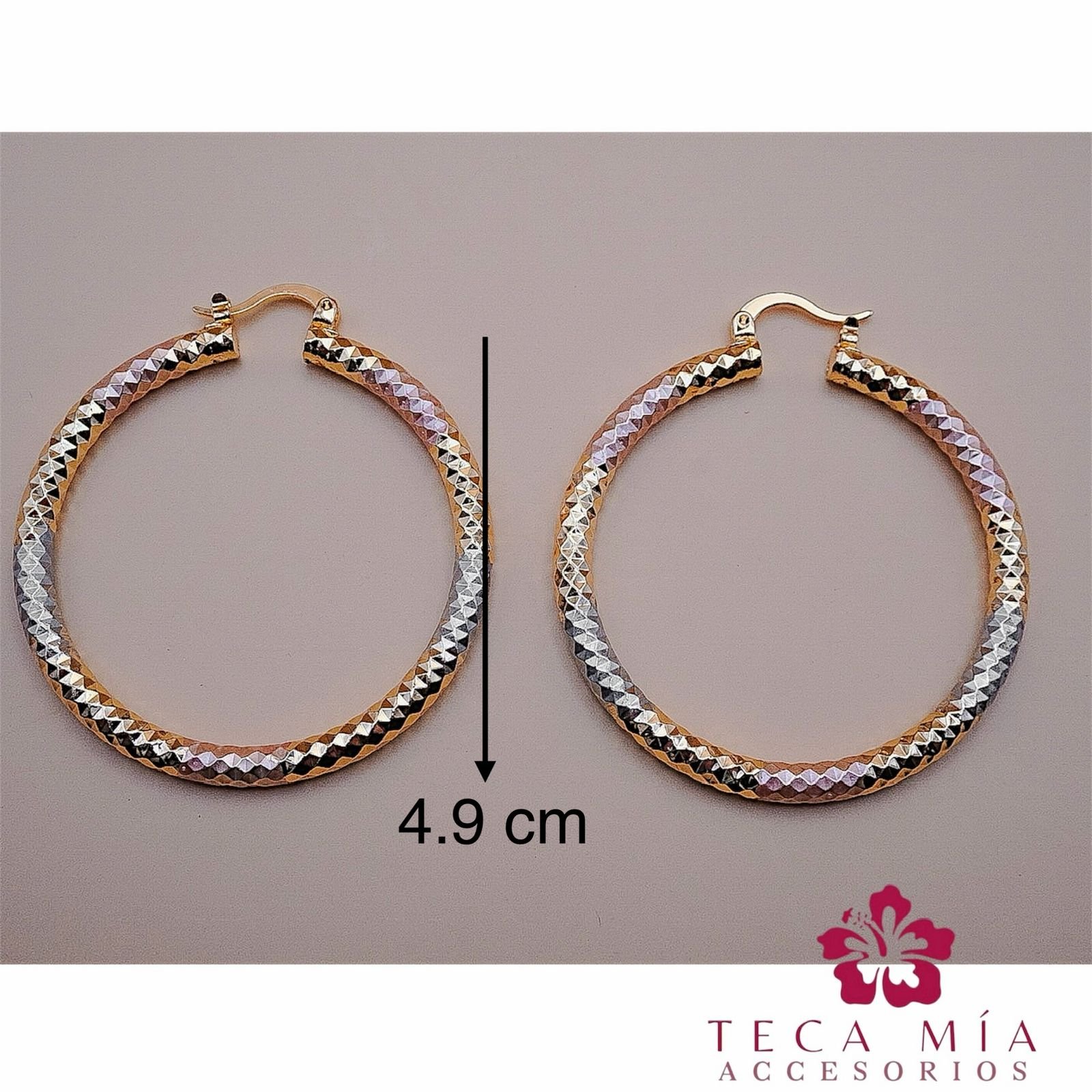 Arracada de 4.9 cm de diámetro, oro laminado