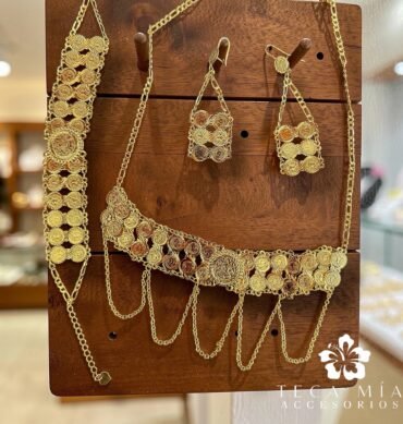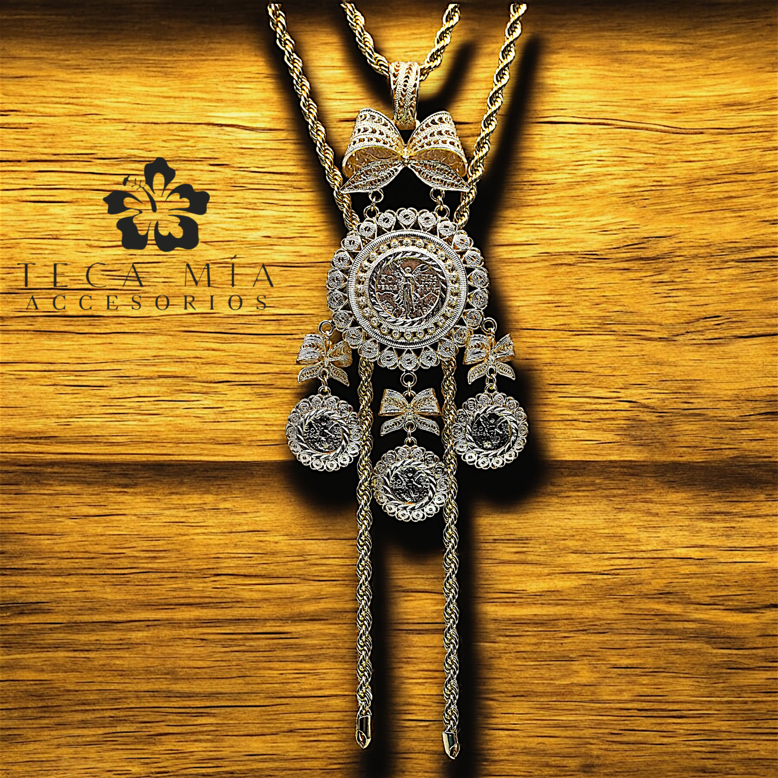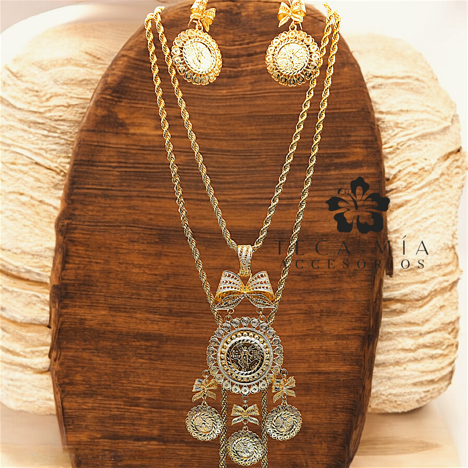 Juego con pendiente y torsal largo de 1.70m (doble vuelta) y par de aretes
