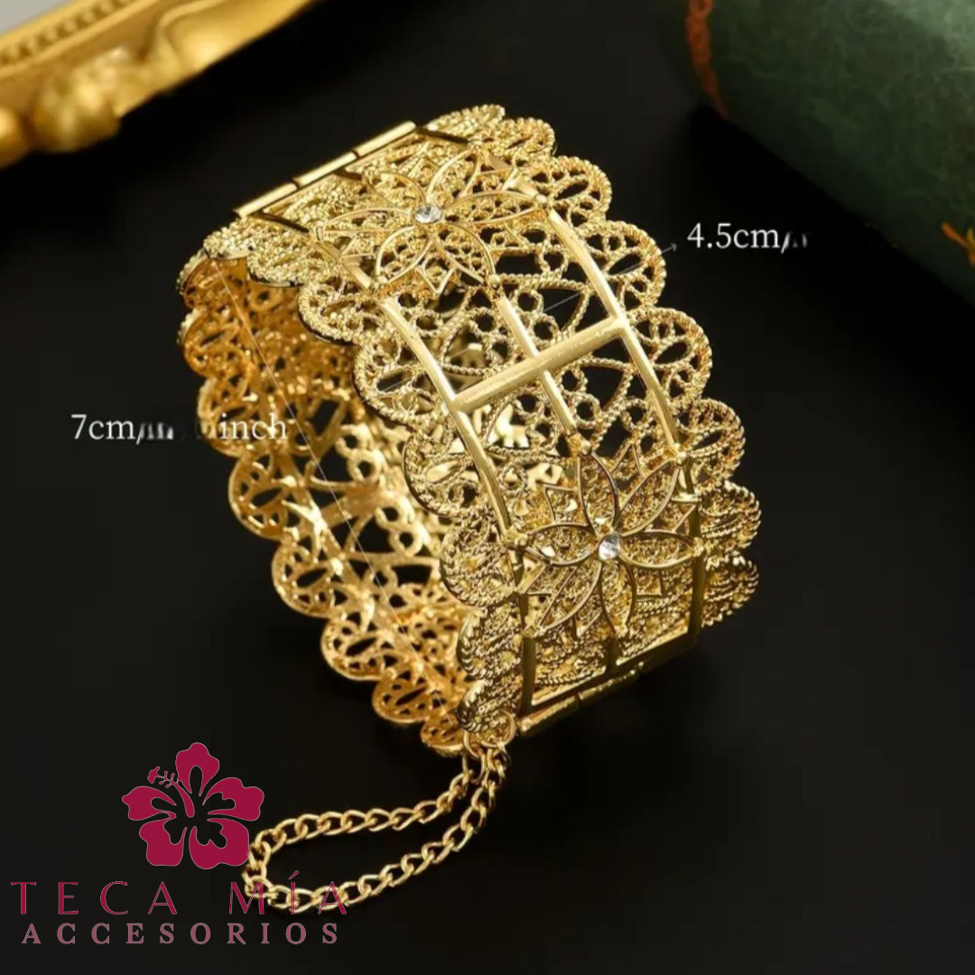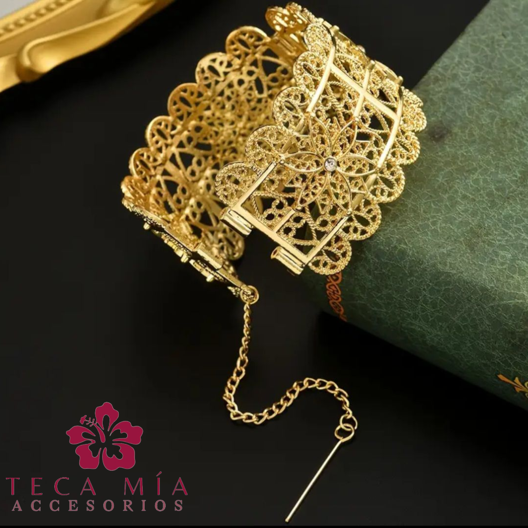 Pulso grueso de filigrana, diametro de 7 cm, brazalete con apertura para meter la muñeca