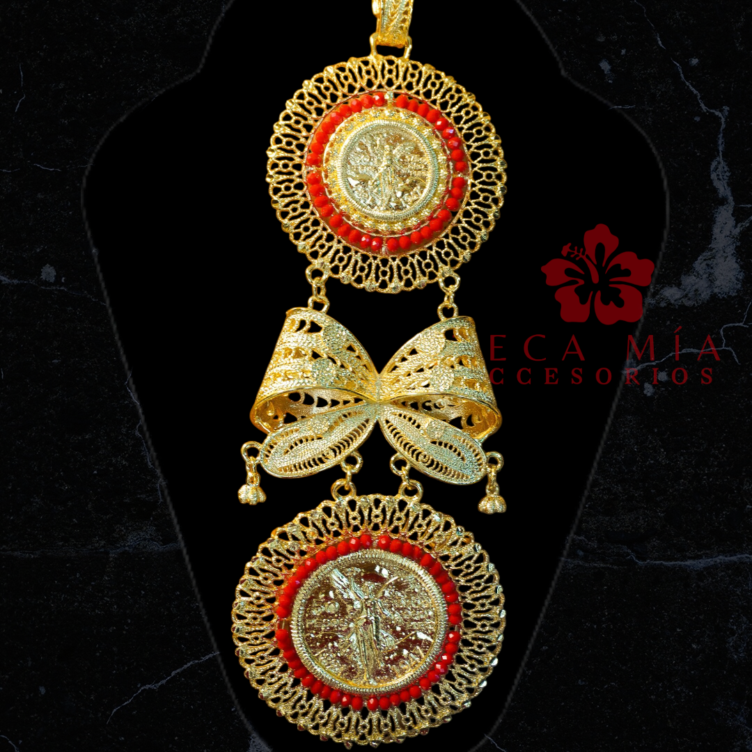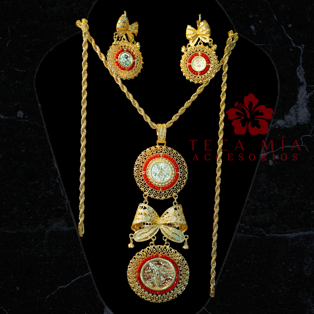 Set completo: Dije doble, aretes y torsal doble de 150 cm (doble vuelta)