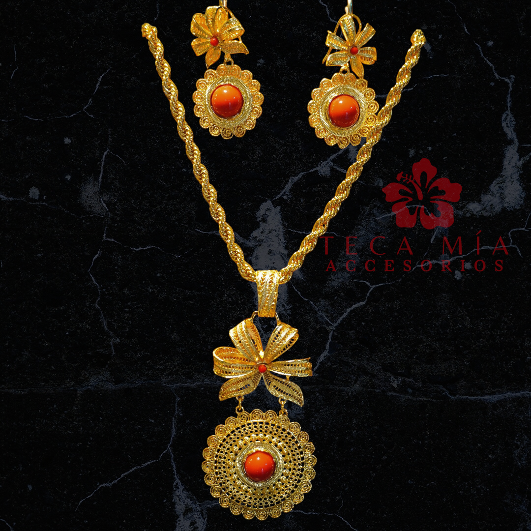 Set completo: Dije , aretes y torsal 70 cm